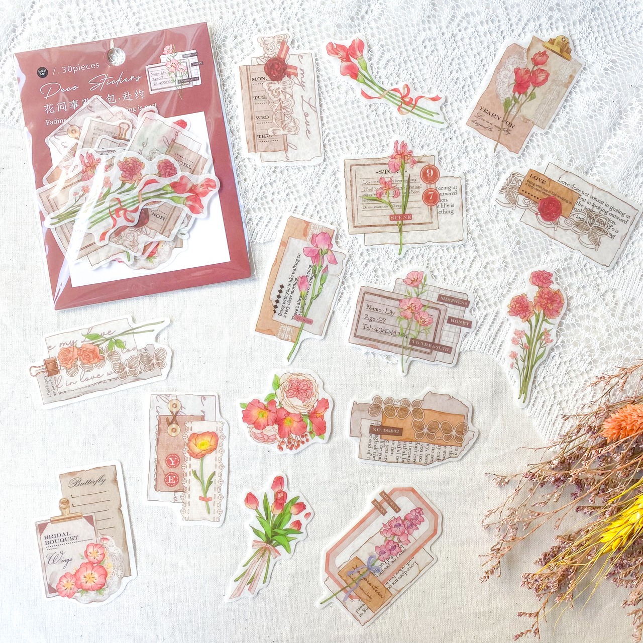 花と紙を組み合わせた和紙シールです。